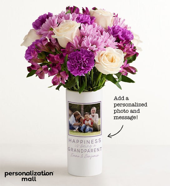 NEW Don’t just say it; send it! Create a one-of-a-kind gift just for them with the Signature Sentiments collection, an exclusive collaboration with Personalization Mall. If they enjoy being a grandparent—or a godparent, a parent, an aunt, or something similar—they’ll love this custom gift. Upload a photo and we’ll place it on this keepsake vase. Below it we’ll print “Happiness is being” with your choice of title, such as “a grandmom” or “an abuelo.” You can then add a short message beneath. And to make the gift even more meaningful, choose one of four bountiful bouquets.